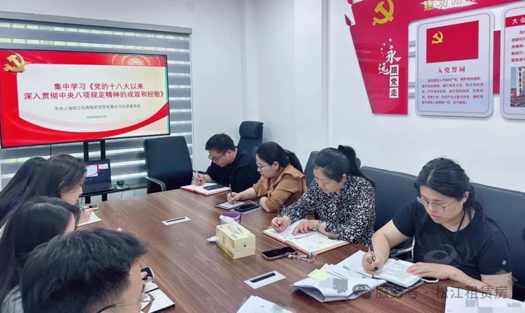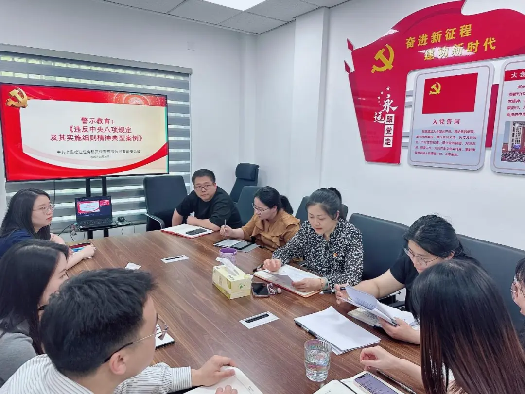 為持續推進深入貫徹中央八項規定精神學習教育常態化,5月26日,松江租賃房公司黨支部組織全體黨員開展“以案為鑒知敬畏 警鐘長鳴促擔當”主題黨日,就違反中央八項規定及其細則精神典型案例開展警示教育,進一步增強紀律意識和規矩意識,切實提升黨員干部拒腐防變能力。會上,黨支部書記王靜帶領全體黨員深入學習了《違反中央八項規定及其實...